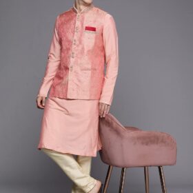 Men’s Kurta Jacket Set – Full Sleeve Ethnic Wear with Mandarin Collar, Blended Viscose Outfit for Wedding, Anniversary & Party