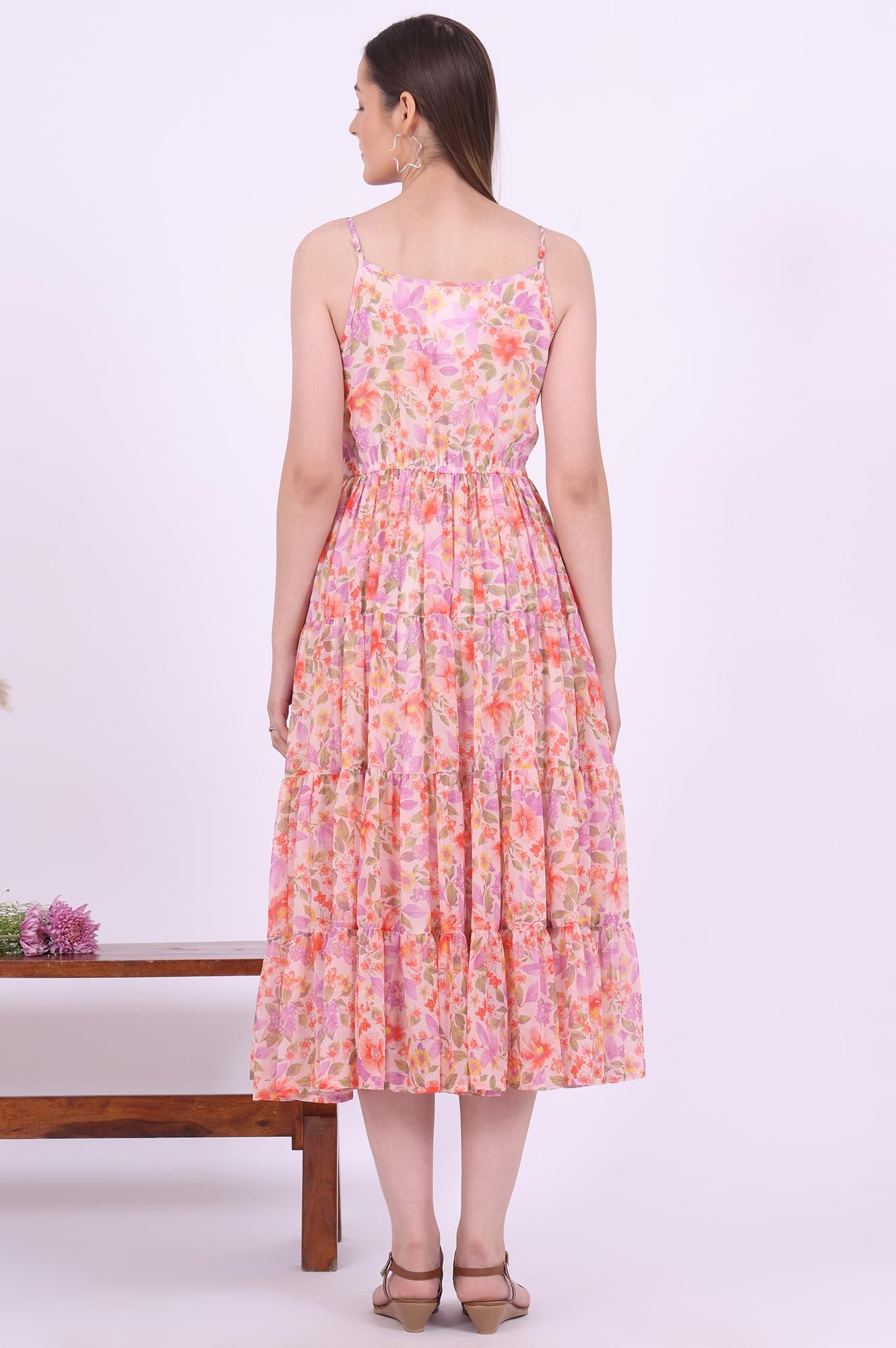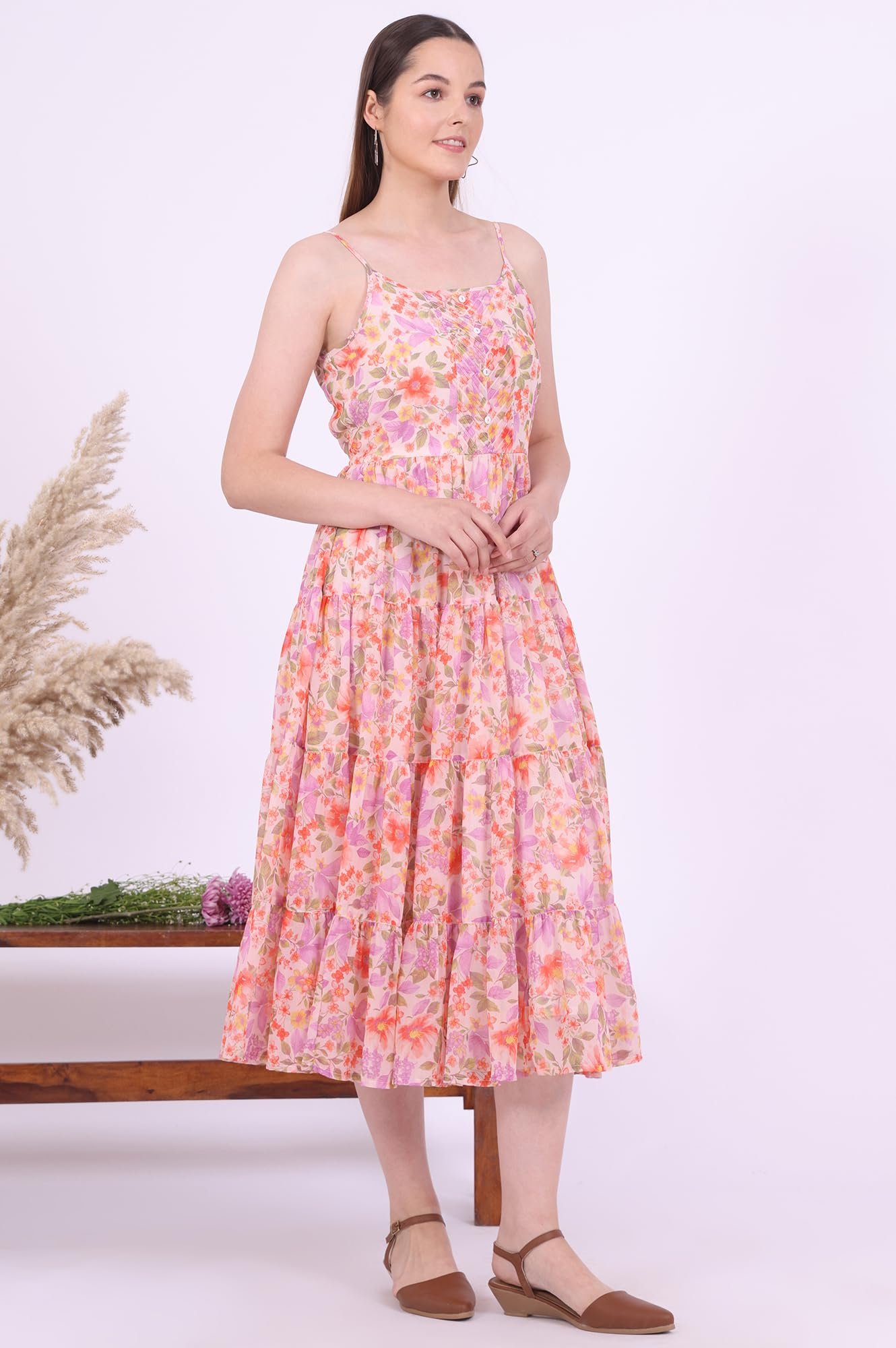 Designed to flatter all body types, the flared silhouette offers a universally appealing shape that accentuates your natural curves while ensuring ease of movement. The dress falls beautifully to create an elegant and feminine drape, making it a versatile choice for women who value both style and comfort. The detailed print further enhances its charm, ensuring you make a bold yet sophisticated statement wherever you go.