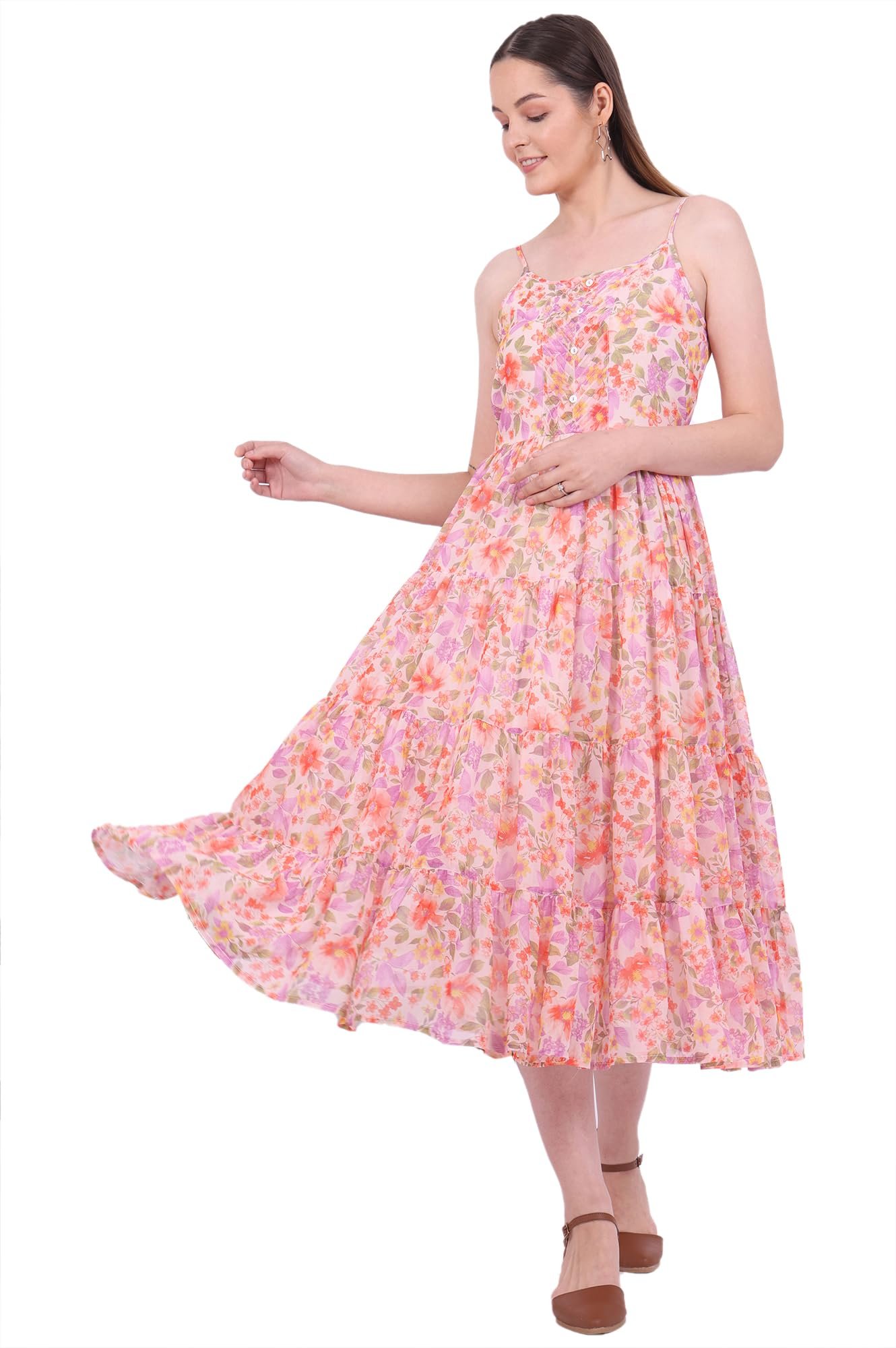 Whether you’re headed to a casual gathering or dressing up for an important event, this Aurelia Women’s Orange Printed Flared Dress fits the bill for multiple occasions. Pair it with stylish heels for a polished look or go casual with chic sandals. Its lightweight fabric ensures that you remain comfortable throughout the day, making it your go-to piece for outings, celebrations, and everything in between.
