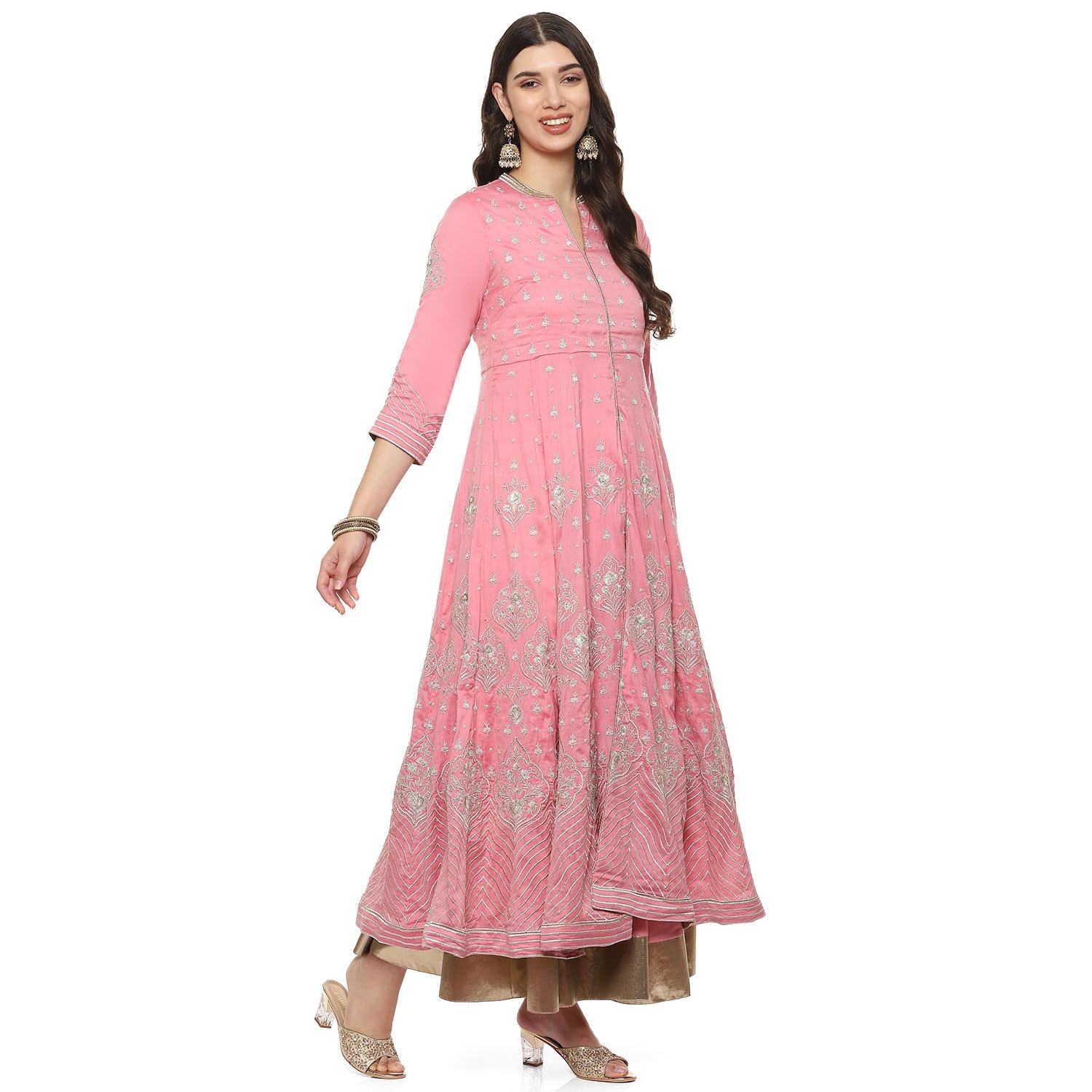 Make a striking impression at festive gatherings, weddings, or family functions with the BIBA Women’s Embroidered Anarkali Set. Designed in a graceful pink shade, this 3-piece ensemble masterfully combines classic tradition with contemporary charm, making it a standout addition to your ethnic wardrobe. With intricate embroidery hues adorning the yoke and hemline, each detail has been crafted with precision and care to deliver undeniable sophistication.