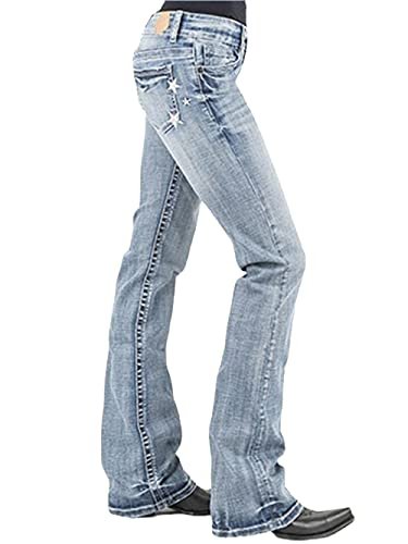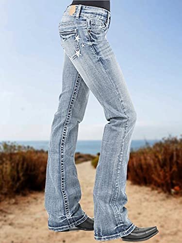 Women’s Embroidered Bootcut Jeans – Washed Denim Pants, Light Blue