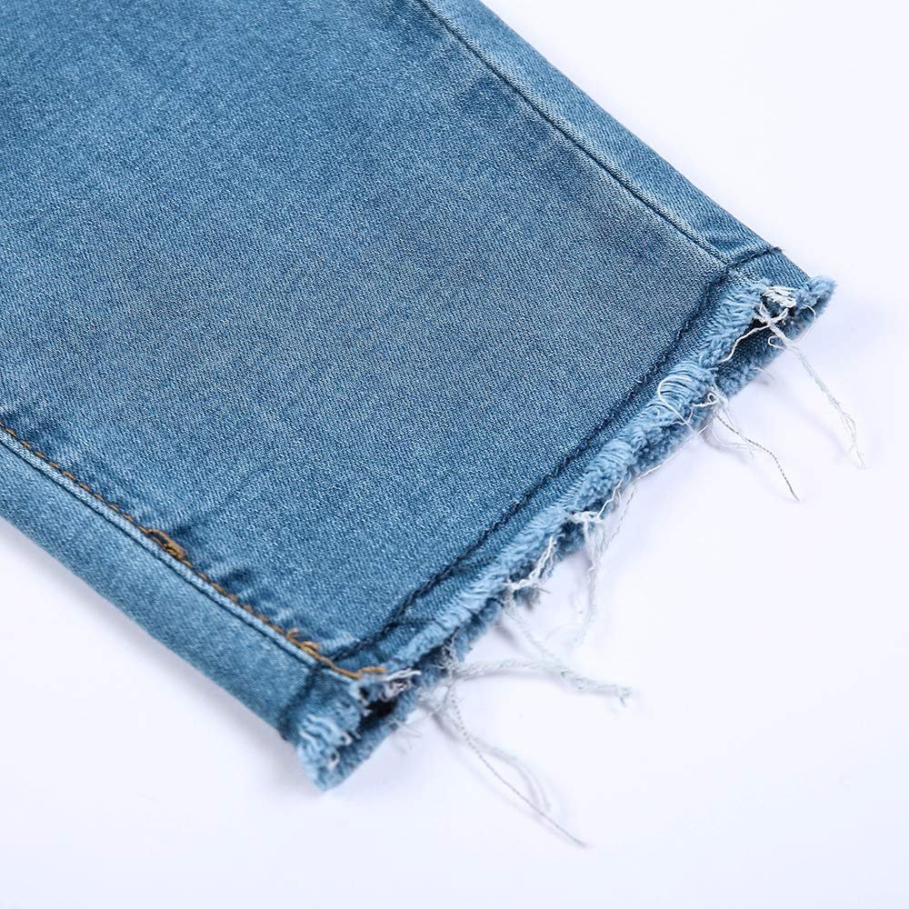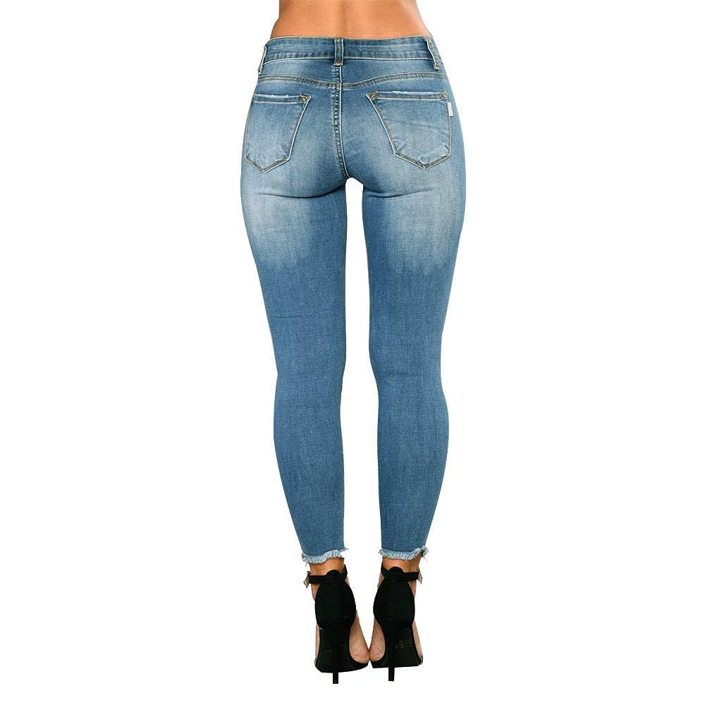 Women’s Distressed Skinny Denim Pants – Ripped Stretch Jeans, Light Blue