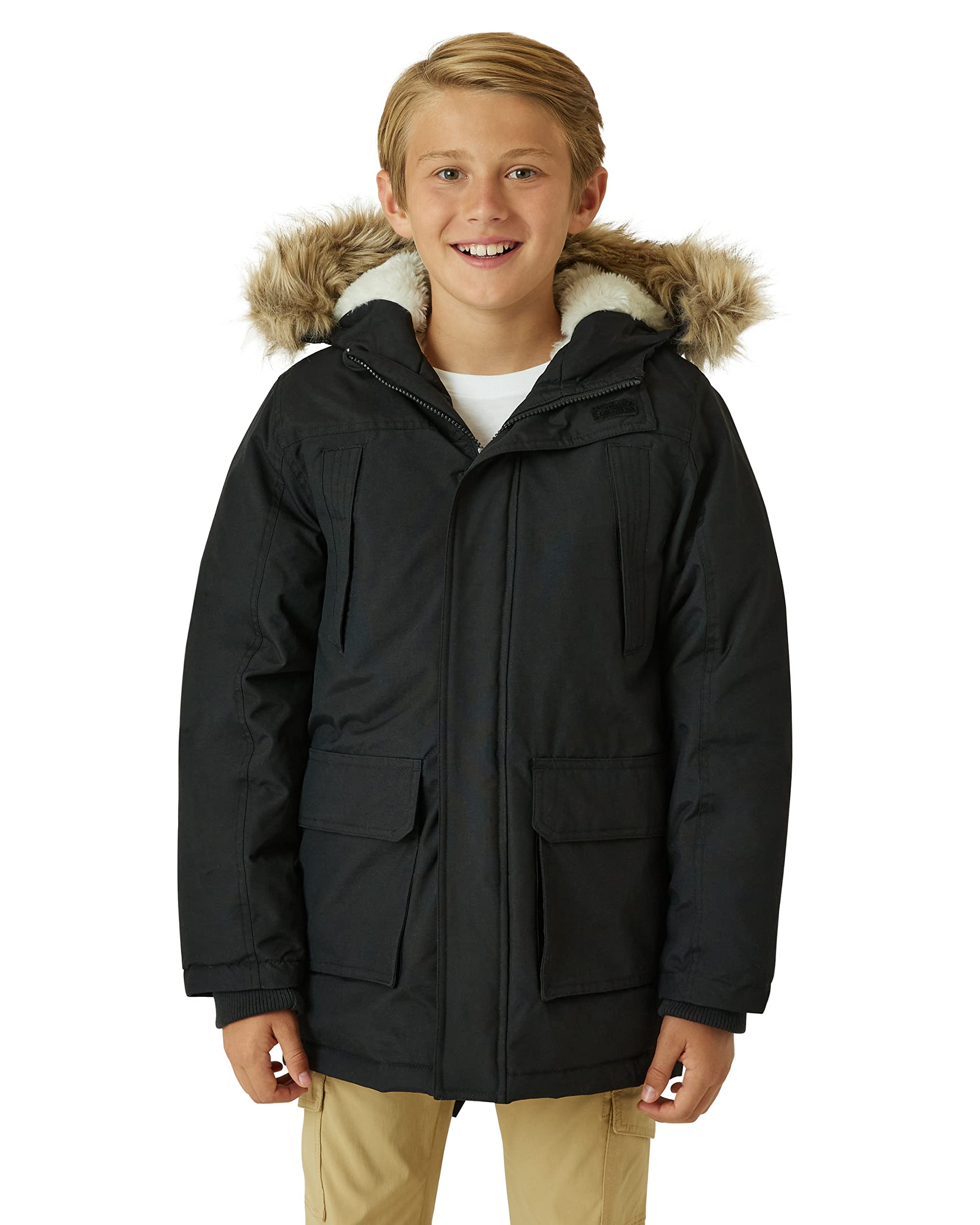 Boys’ Heavyweight Winter Parka – Waterproof Down Coat with Faux Fur Trimmed Hood