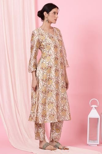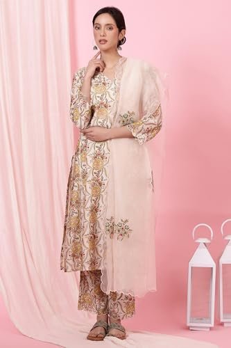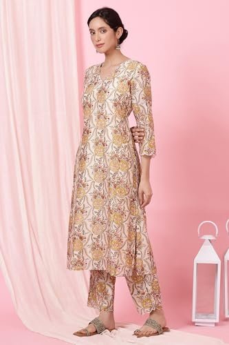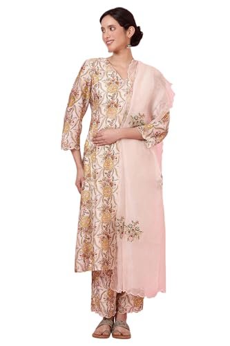 Discover the elegance of traditional craftsmanship with the Folksong Women’s Ecru Handblock Printed Kurta Set. This meticulously designed ensemble celebrates the artistry of handblock printing, reflecting its intricate patterns and timeless sophistication. The soothing ecru (off-white) palette further enhances its understated beauty, lending a refined and elegant vibe to your everyday ethnic wear collection.