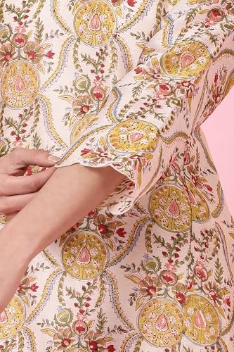 Made from breathable cotton fabric, this kurta set offers unmatched comfort, making it perfect for long hours of wear. Every element of this set has been thoughtfully designed to blend utility with artisanal flair. Whether you’re at a morning event or a relaxing workday, the Folksong Women’s Ecru Handblock Printed Kurta Set ensures you feel at ease while making a statement about your good taste in ethnic fashion.