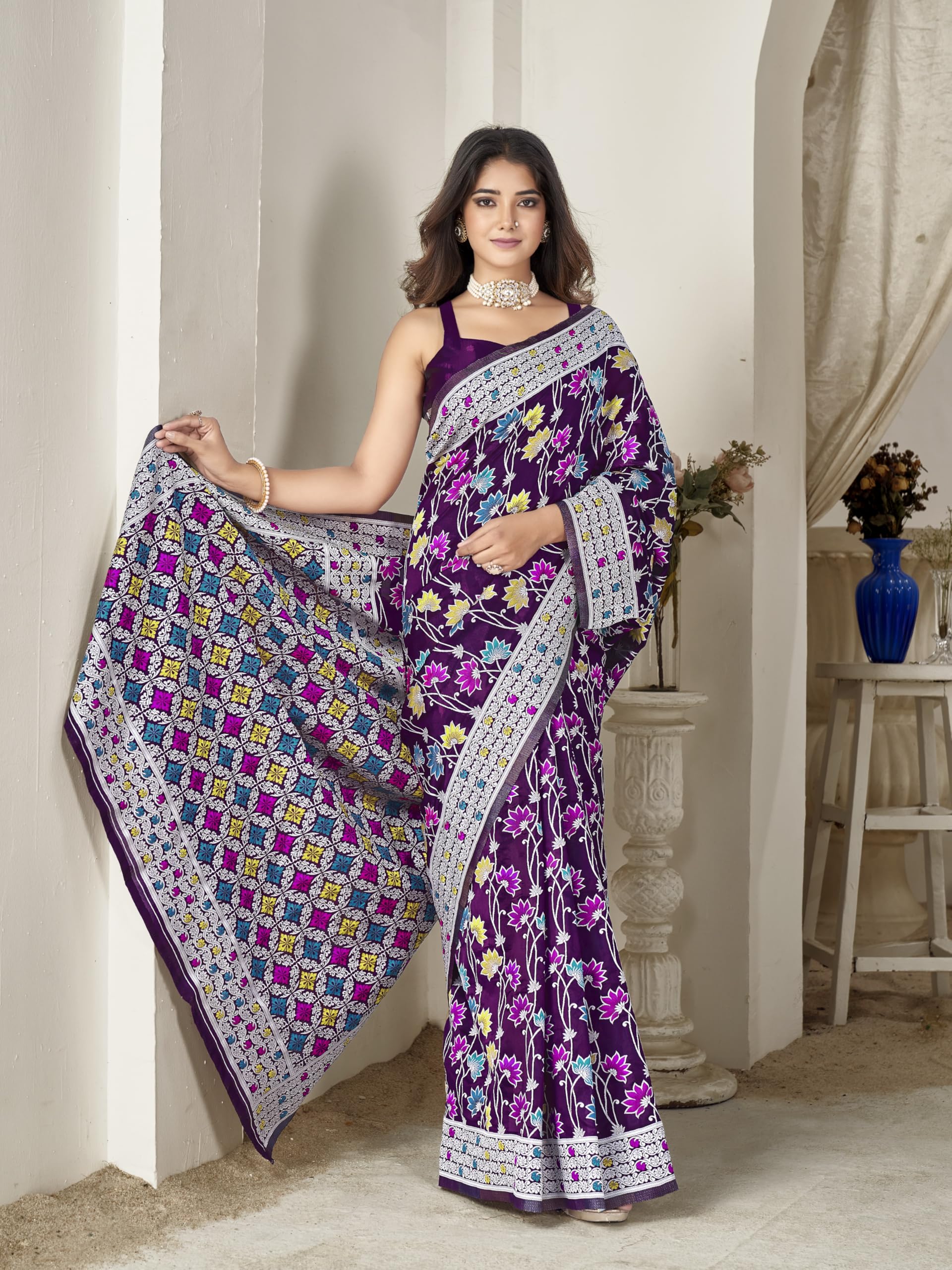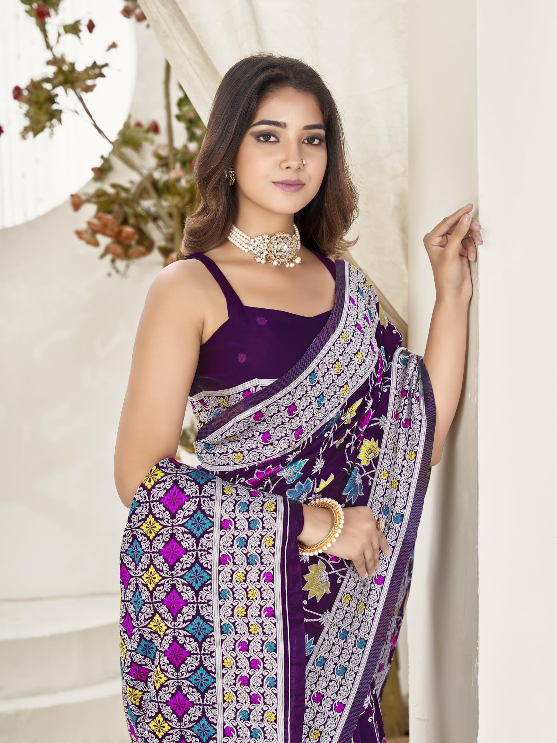 Glory Sarees Women’s Kashmiri Pashmina Silk Woven Saree With Blouse Piece (Modern_Silk101_Wine)