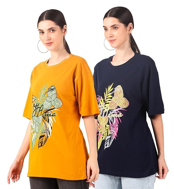 Redefine comfy, casual wear with this oversized t-shirt combo pack, featuring two must-have shades: trendy mustard and versatile navy. Whether you’re lounging at home, meeting friends, or running errands, these tees are the perfect way to blend style with comfort. The oversized silhouette offers an effortless, relaxed fit that keeps you comfortable all day long without compromising on style.