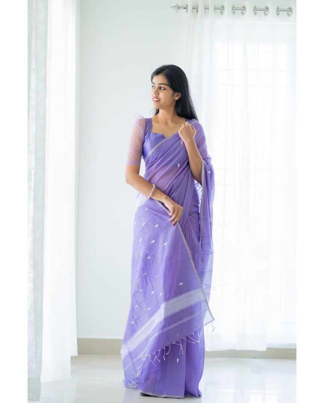 - Fabric: – Cotton Linen Silk, Blouse Fabric: – Cotton Linen Silk. Work: Jacquard Woven Stylish Sari, Zari Woven.